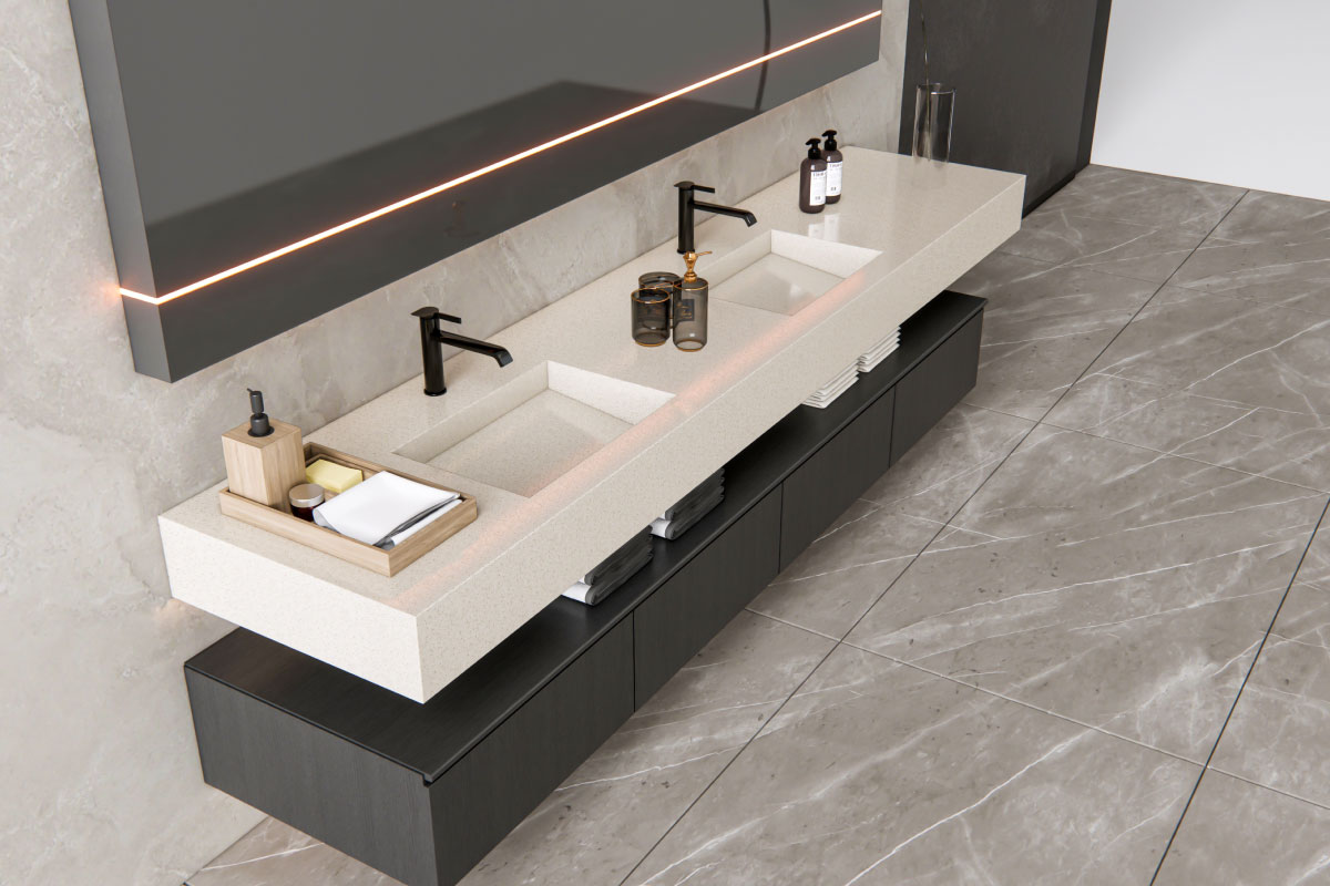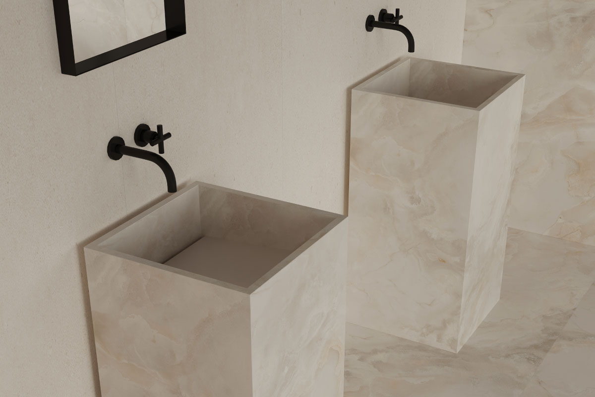 As cubas esculpidas em porcelanato são a combinação perfeita entre design moderno, funcionalidade e durabilidade. Projetadas para se integrar harmoniosamente ao ambiente, elas elevam o padrão de elegância de banheiros, lavabos e espaços gourmet, oferecendo uma solução única e personalizada.