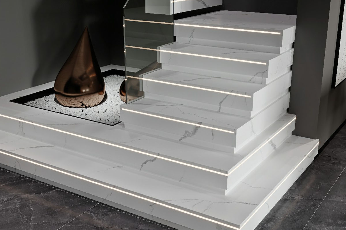 As escadas em porcelanato são a escolha ideal para quem busca unir sofisticação, resistência e funcionalidade. Com design moderno e acabamentos impecáveis, elas transformam qualquer ambiente em um espaço elegante e seguro, valorizando projetos residenciais e comerciais.